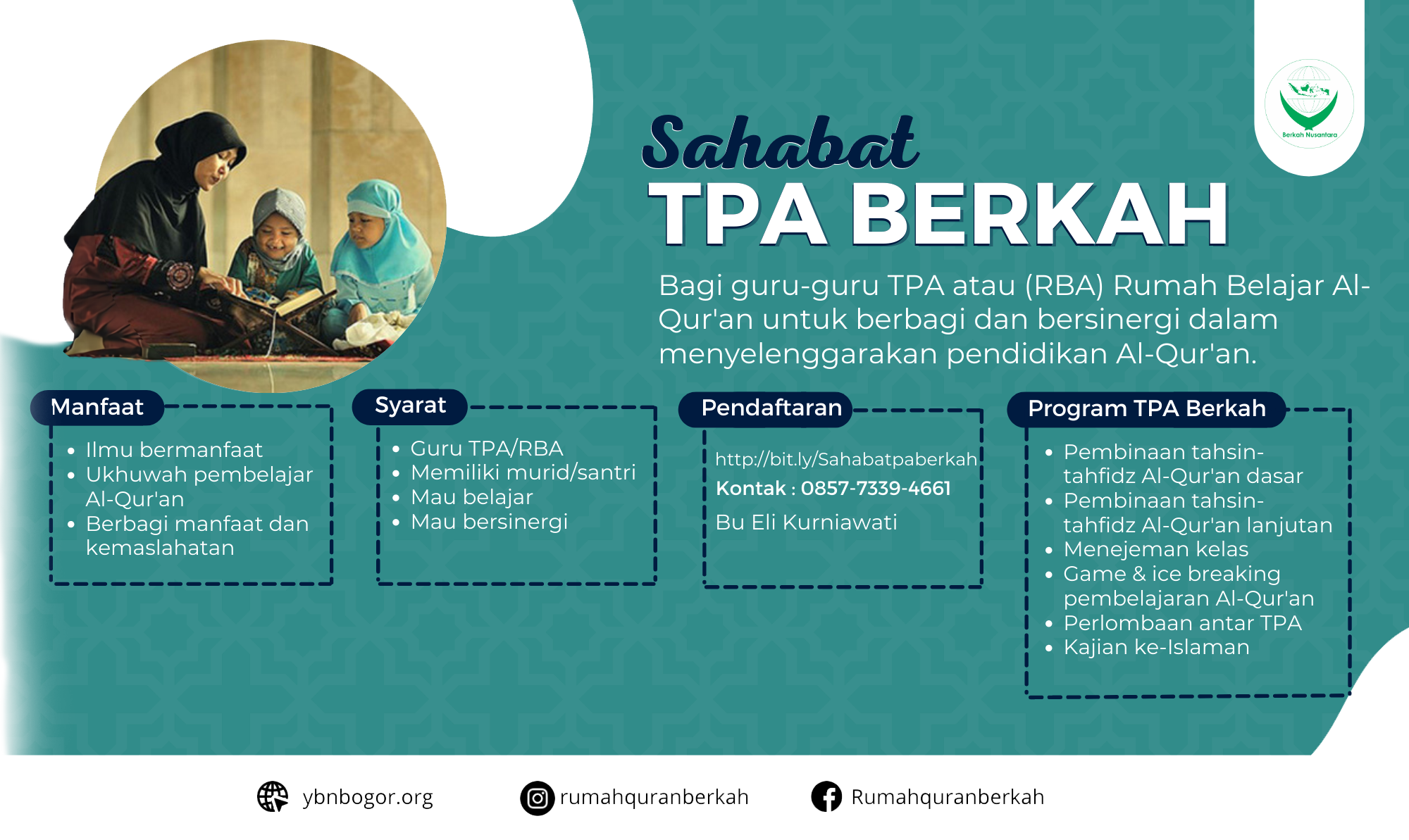 TPA (Taman Pendidikan Al-Qur’an) Berkah adalah unit Yayasan yang mengelola program pembinaan tahsin dan tahfidz bagi para guru TPA. Bentuknya berupa komunitas tahsin dan tahfidz yang dibina oleh ustad-ustadzah dari Yayasan. Kegiatannya berupa dauroh tahsin-tahfidz, tahsin pekanan, diklat, dll diselenggarakan secara online dan offline.